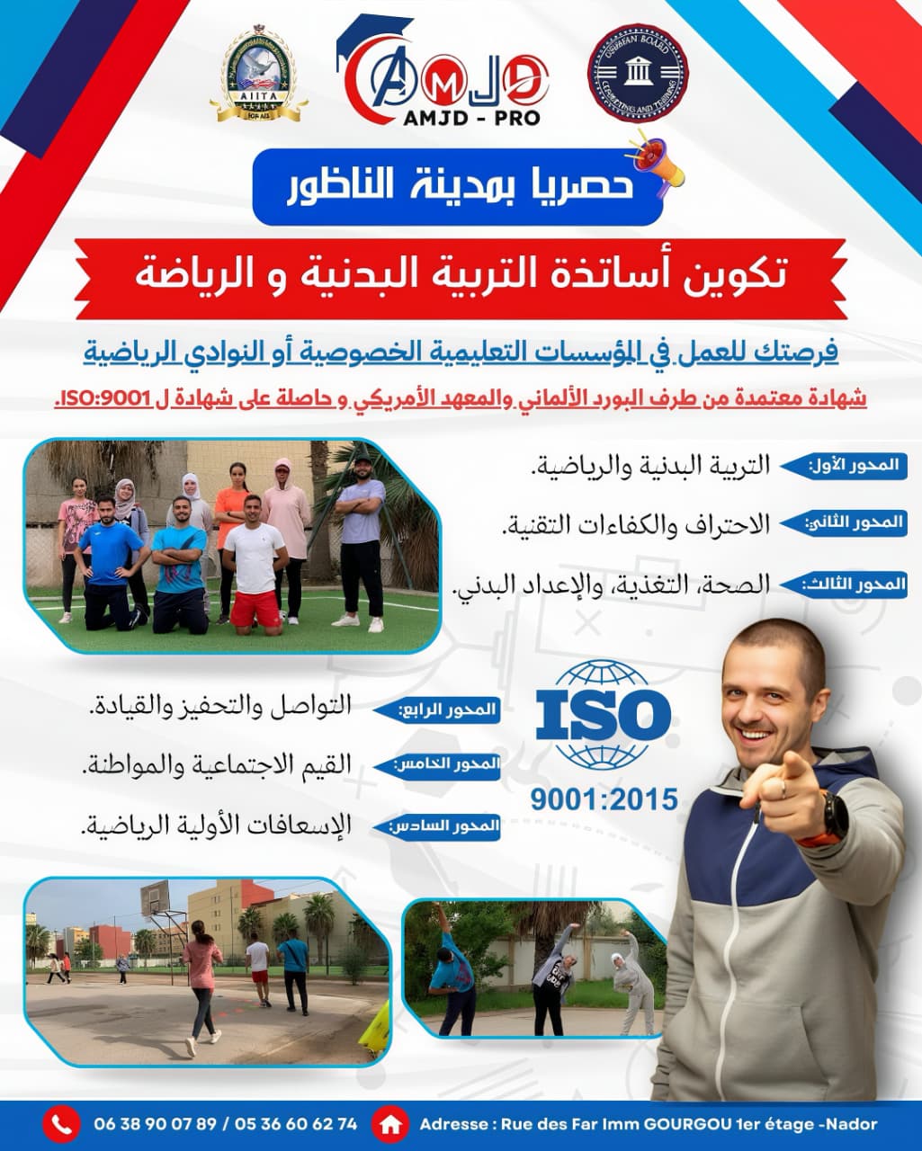 الأكاديمية الدولية أمجد برو للغات و التكوين المستمر-الناظور أكاديمية دولية معتمدة من البورد الالماني و المعهد الأمريكي الدولي للتدريب و الإعتماد تقدم تكوينات مهنية في مختلف المجالات مع شواهد دولية معتمدة