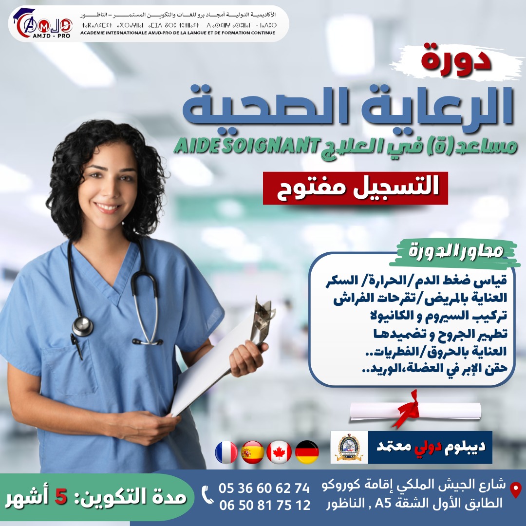 الأكاديمية الدولية أمجد برو للغات و التكوين المستمر-الناظور أكاديمية دولية معتمدة من البورد الالماني و المعهد الأمريكي الدولي للتدريب و الإعتماد تقدم تكوينات مهنية في مختلف المجالات مع شواهد دولية معتمدة